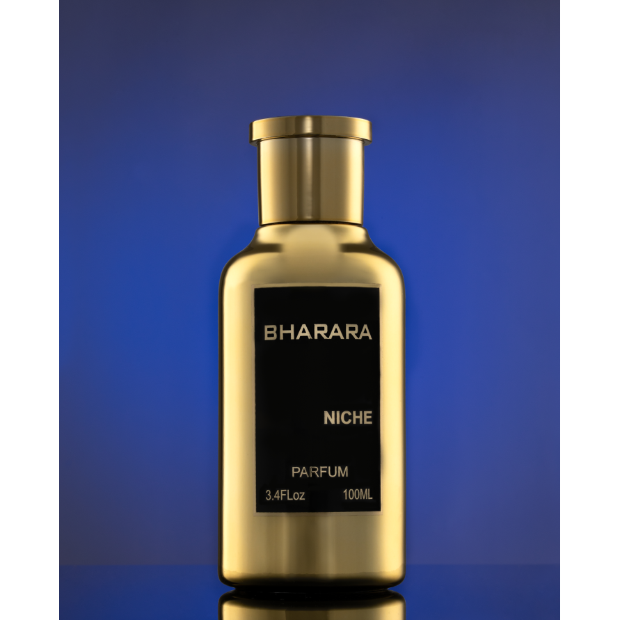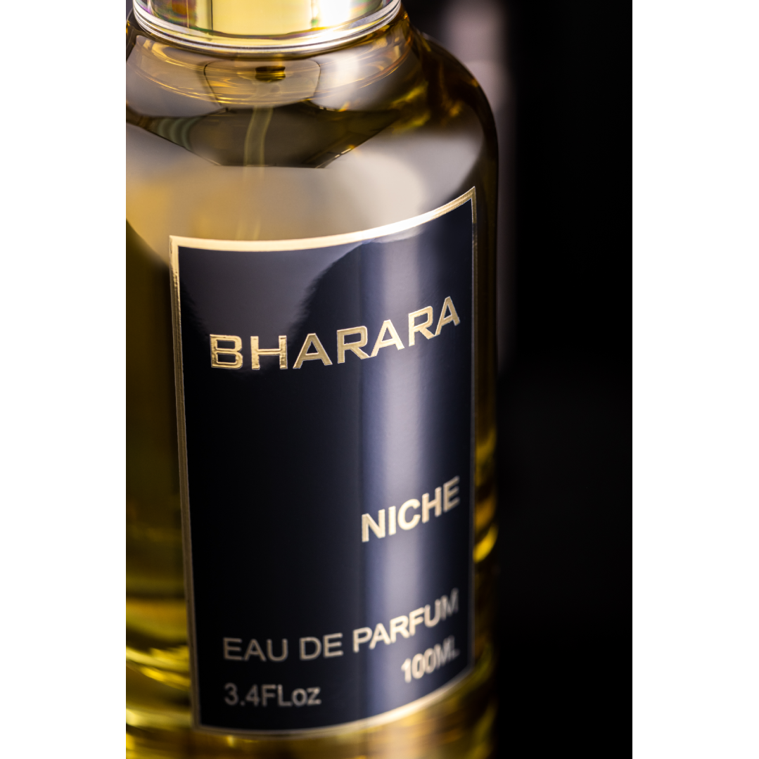 Indulge in the alluring scent of Bharara Niche Eau De Parfum, a unisex fragrance featuring a captivating combination of zesty juniper berries, alluring jasmine, rich chocolate, and rejuvenating fir balsam.